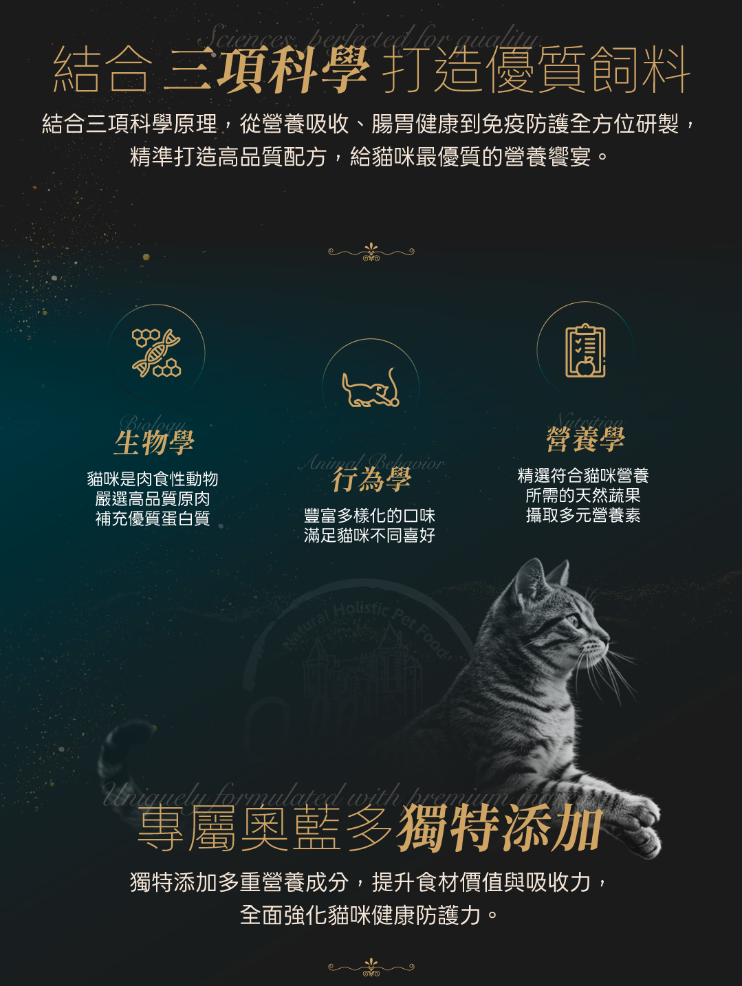 嚴選天然新鮮食材來調配「營養均衡」且「值得信賴」的食譜,提供貓咪攝取生長必需的營養。